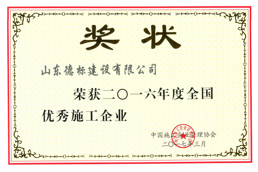 2016年度全國(guó)優(yōu)秀施工企業(yè)