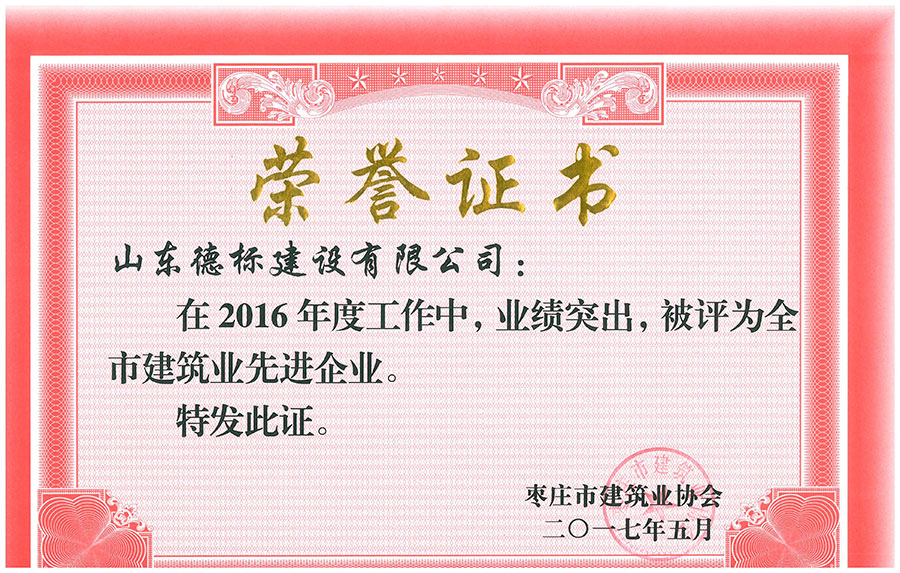 2016年度棗莊市建筑業(yè)先進(jìn)企業(yè)