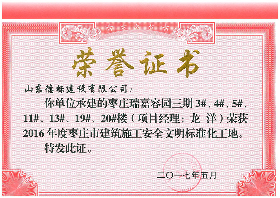 2016年度棗莊市建筑施工安全文明標(biāo)準(zhǔn)化工地-瑞嘉容園三···