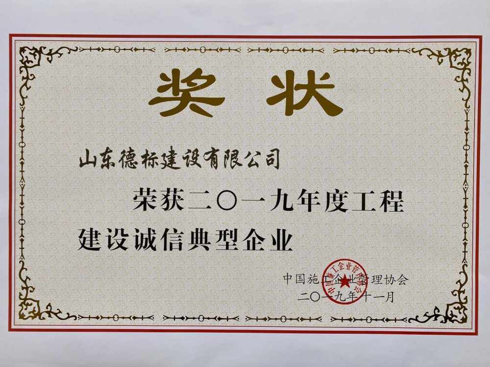 2019國(guó)家建設(shè)誠(chéng)信優(yōu)秀企業(yè)